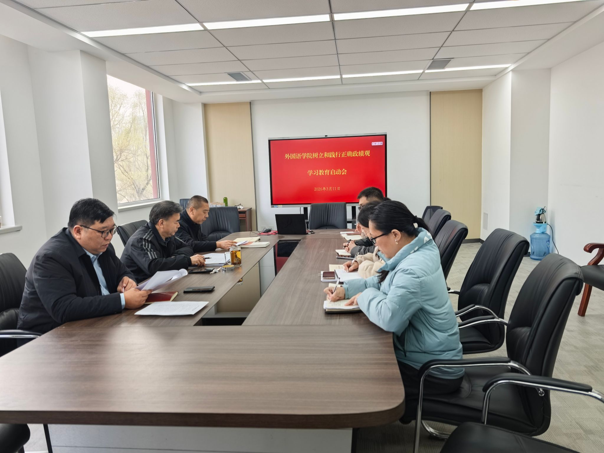 会上,学院党委副书记张国栋领学了学校“关于在全校开展树立和践行正确政绩观学习教育的通知”等内容。