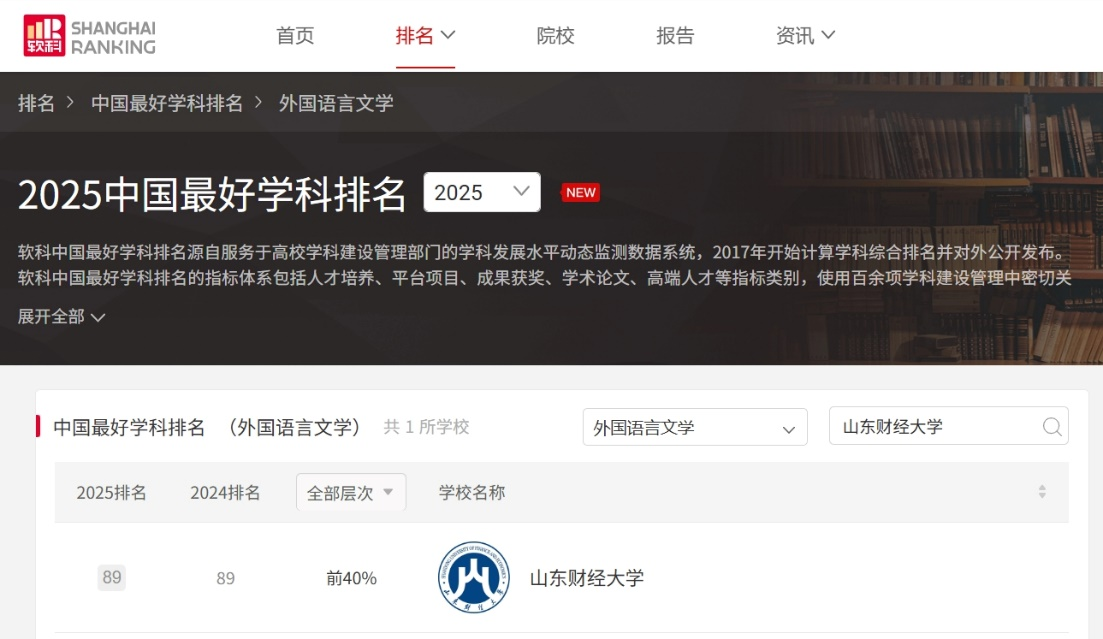 软科“中国最好学科排名”面向全国设有学术型研究生学位授权点的高校进行评价,涵盖人才培养、科研项目、成果获奖、学术论文、学术人才等5大类共17项指标。在本次排名中,日本做爱 外国语言文学学科从全国众多高校中脱颖而出,位列第89位,进入全国前40%行列,在全国财经类高校中排名第5位,展现了学院持续增强的学科竞争力。